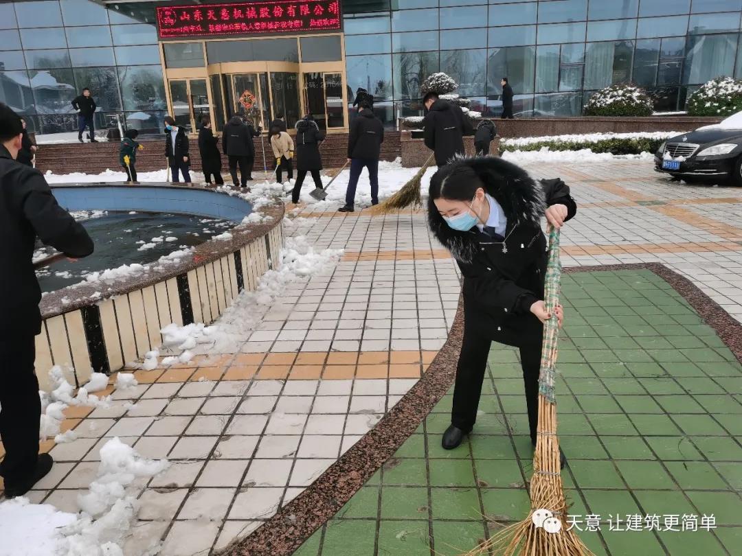 大雪悄然而至,一覺(jué)起來(lái),窗外已是銀裝素裹。然而大雪的降臨也給大家的出行帶來(lái)諸多不便,公司大門口、辦公樓前的道路都被皚皚白雪覆蓋。早晨上班前,公司總經(jīng)理劉海龍、營(yíng)銷總監(jiān)郭川東帶領(lǐng)公司員工拿起掃帚鐵锨,滿懷激情,投入除雪當(dāng)中。整個(gè)除雪作業(yè)過(guò)程井然有序,熱火朝天,干勁十足,大家不懼寒冷,不怕手凍。鐵锨和地面的碰擊聲、掃帚清掃雪花的刷刷聲,不一會(huì)兒辦公樓前的積雪已蹤影全無(wú),所到之處,雪沒(méi)了,路干凈了,掛滿枝頭的冰凌隨風(fēng)婆娑起舞,點(diǎn)頭稱贊,大家的心中更是無(wú)比的欣慰,雖然凍紅了臉、累出了汗,但累并快樂(lè)著。