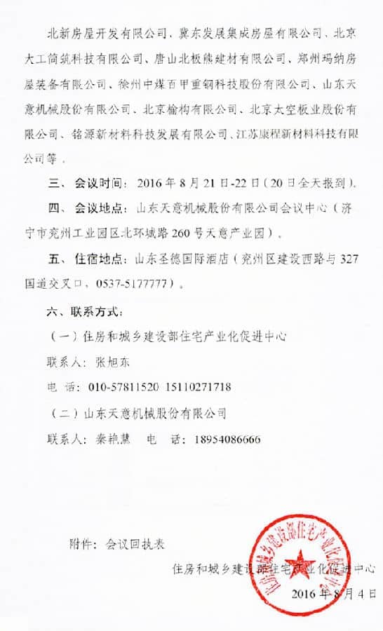 本次會議由山東天意機械股份有限公司承辦,屆時中國建筑科學研究院、中國建筑材料科學研究總院、中國建筑西安墻體材料研究設計院、哈爾濱工業(yè)大學、同濟大學、重慶大學、北京工業(yè)大學、山東建筑大學、吉林建筑大學等科研院校的專家以及行業(yè)企業(yè)主要負責人將參加此次會議。
