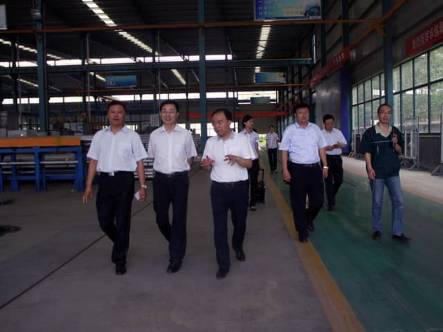 市領(lǐng)導(dǎo)先后參觀了我公司的6A辦公大樓、省級研究中心、體驗(yàn)館、樣板別墅、集成房屋、設(shè)備生產(chǎn)車間以及鋁型材加工基地。每到一處,市領(lǐng)導(dǎo)都仔細(xì)詢問了技術(shù)與生產(chǎn)等相關(guān)問題。