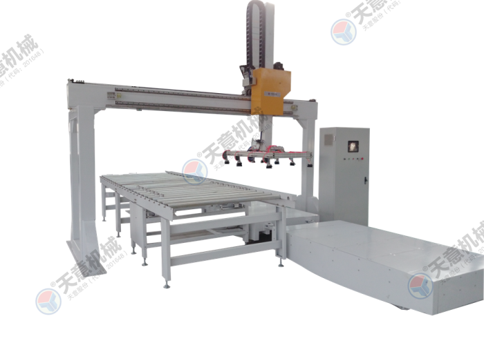 1.本機器適用于硅酸鈣板、水泥纖維板、玻鎂板、裝飾板等板式工件,配套連線作業(yè)時進行自動上料或下料。